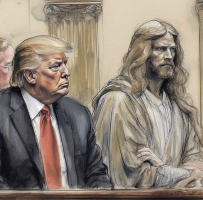 For a time, evangelicals tried to maintain a line between Trump and Jesus. But the theological line is getting thinner, razor thin. As Trump recently claimed in a speech, “I'm being indicted for you.”