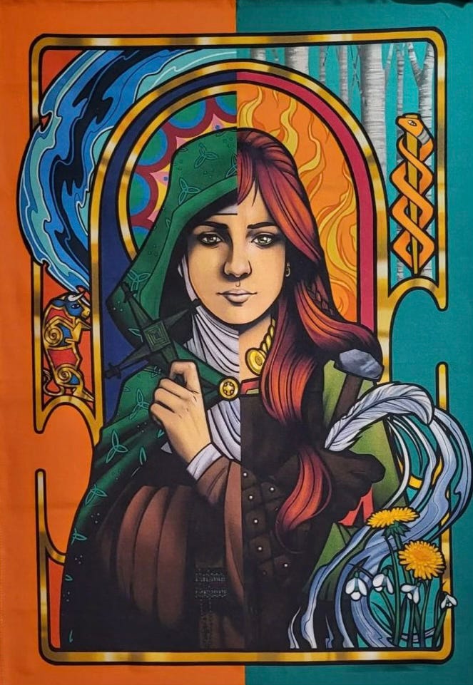 In the video, I said that this icon was originally a mural at Trinity College in Dublin. It wasn’t in Dublin. It was in Dundalk; artist: Marian Noone (Friz). I did not see the original, but I saw prints and reproductions of it when I was in Dublin this past September. (Sorry for any confusion or mistake in my explanation!). You can read a bit about the interest in Brigid here.