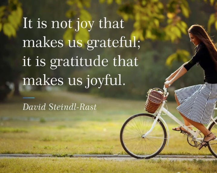 These points stood out for me because I worry that mainline and liberal religious communities will too easily accept the call to “grief and lament” without honestly engaging the “why” questions and downplaying the transformative power of gratitude. Too often, liberal congregations emphasize the social sins that bedevil us - bypassing gratitude in favor of guilt. Indeed, I’ve preached on joy and thanks recently only to have some gloomy Presbyterian or Lutheran sternly tell me that “the pandemic isn’t over and people are still dying” or “joy and gratitude are only signs of privilege.”