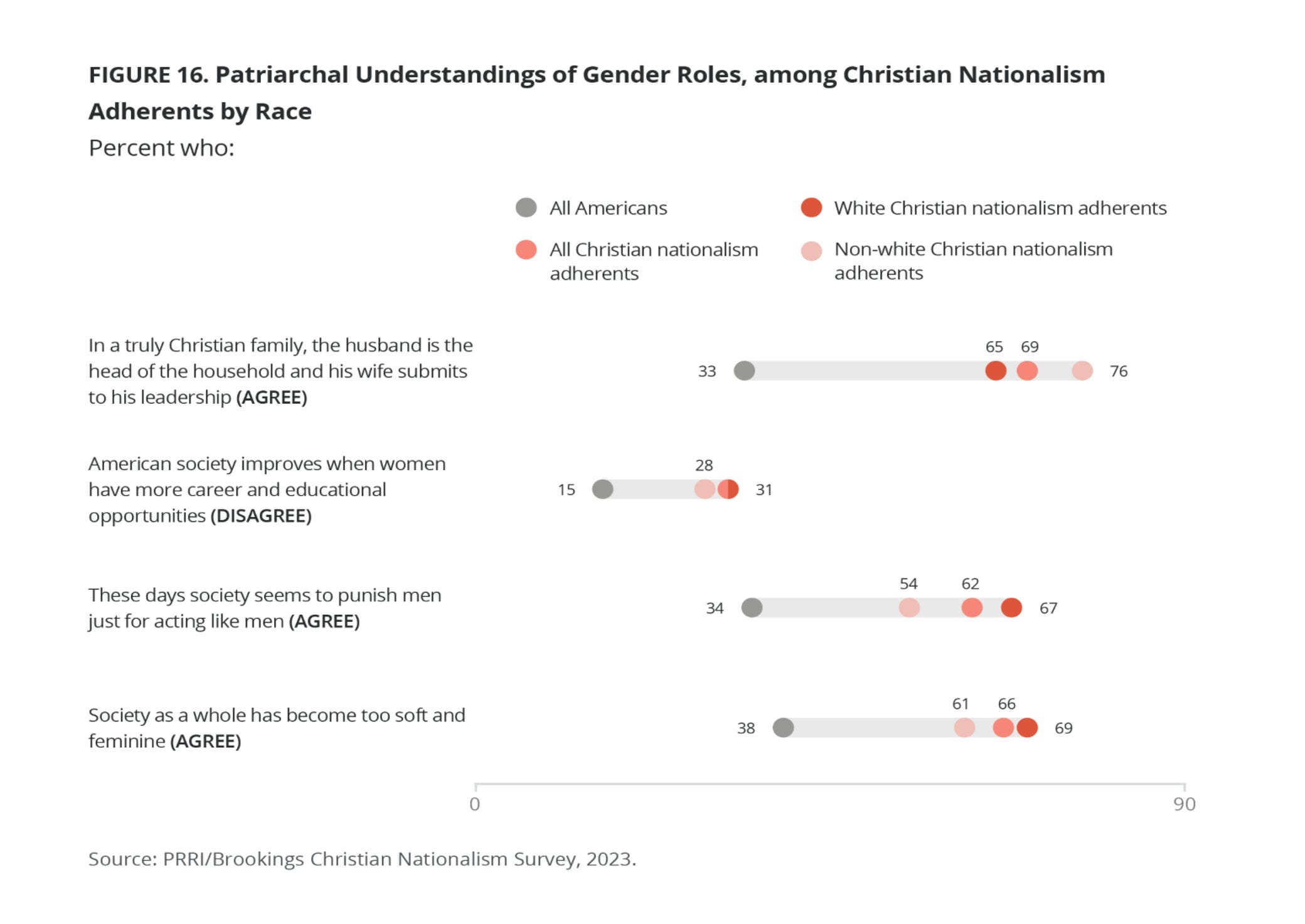 And the continued impact of complementarianism and Christian Nationalism on American politics is clearly demonstrated in the PRRI/Brookings data.